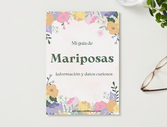 Imprimible en español con 9 coloridas páginas. Una guía con información, datos curiosos, fotos y páginas para colorear con la temática de mariposas. Descarga inmediata en formato PDF.